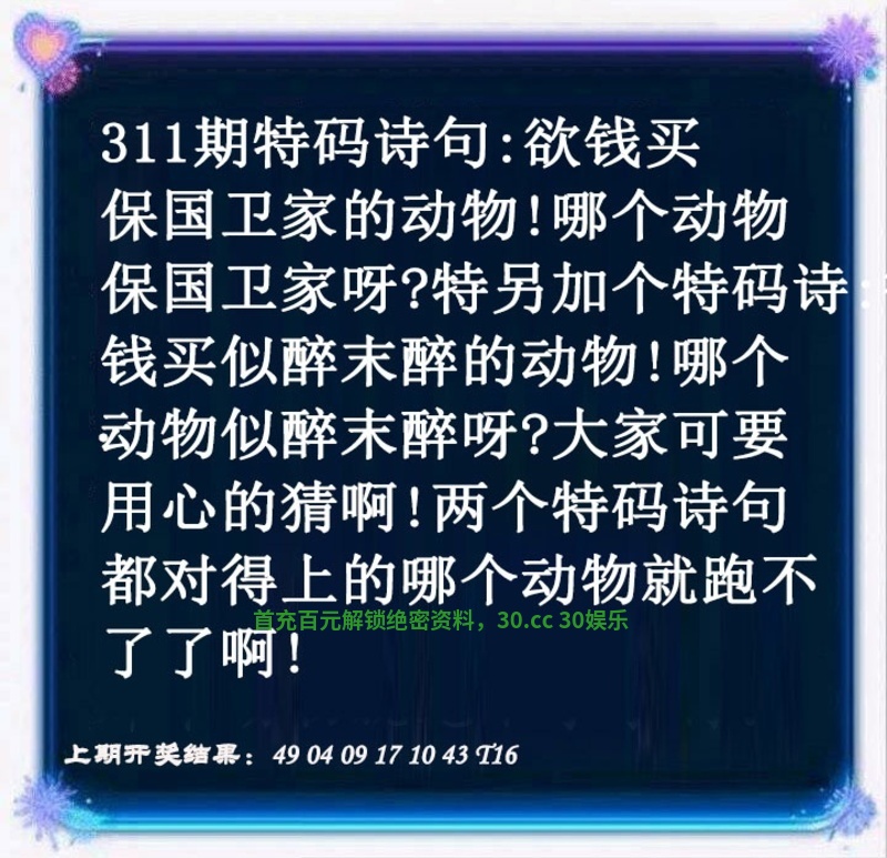 311期七肖中特『羊狗马鸡龙兔猪』开:蛇37错